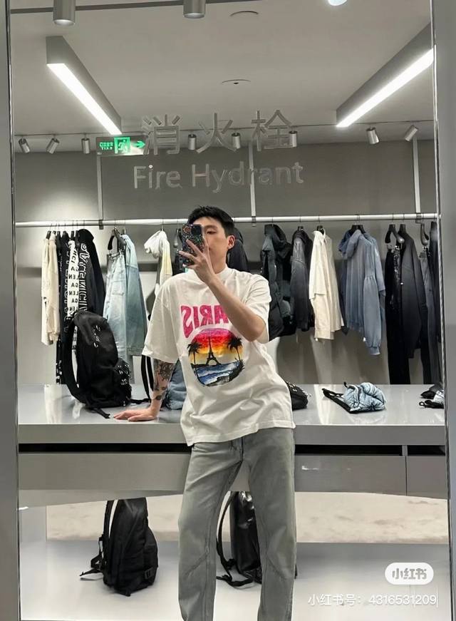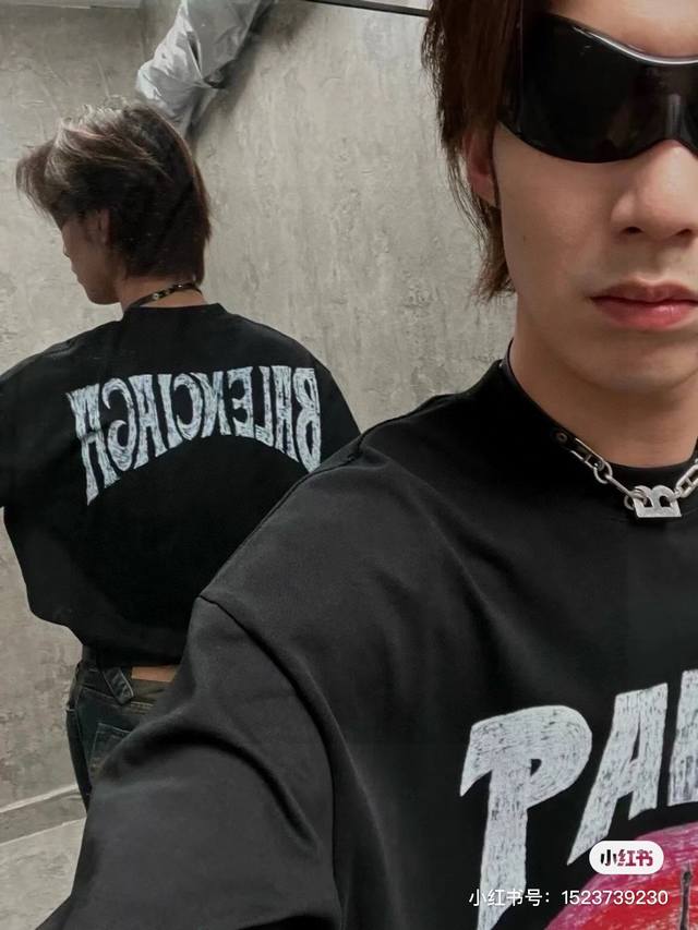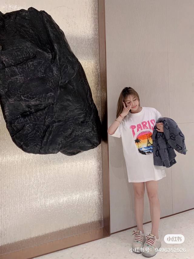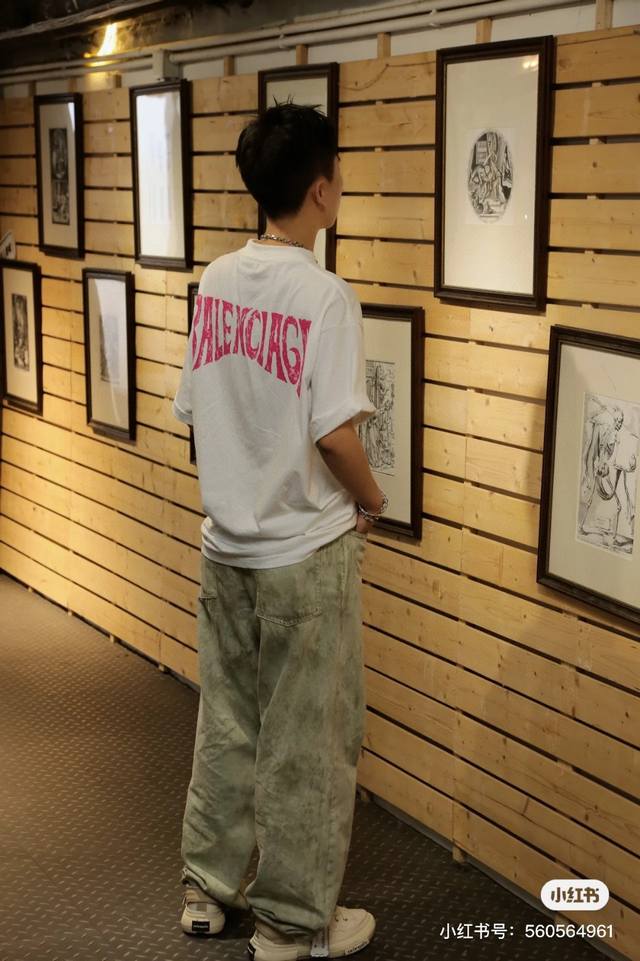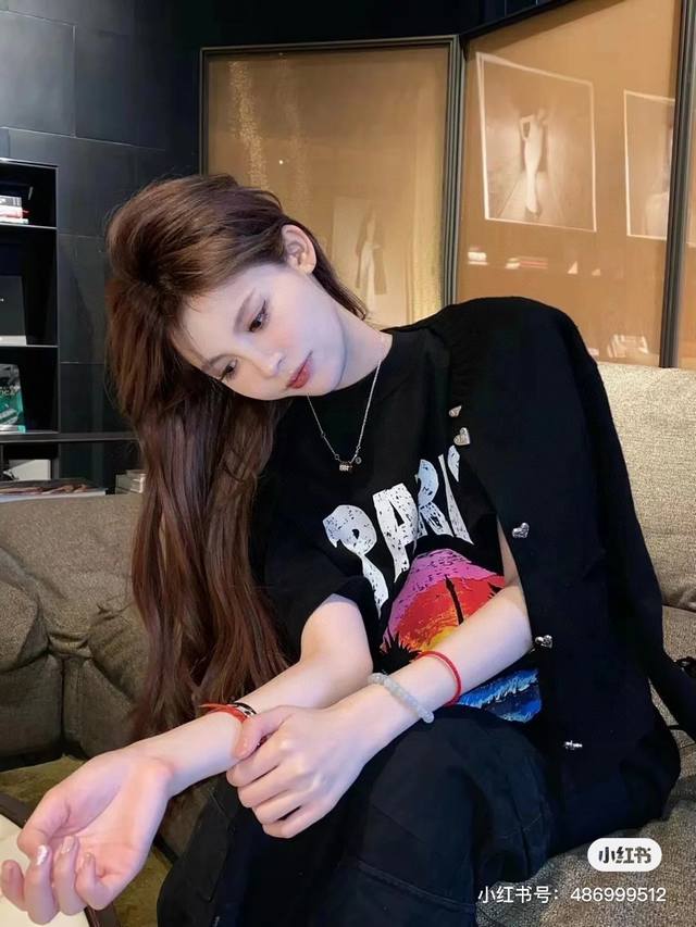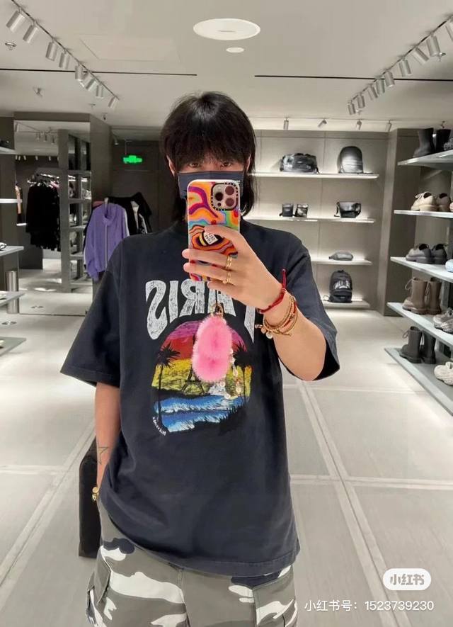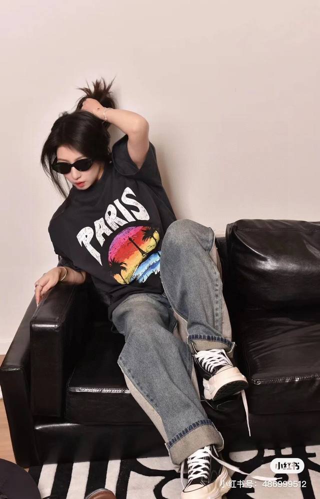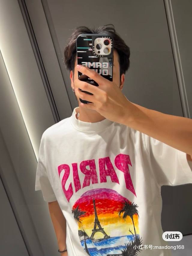 Balenciaga 2025Ss Hawaiian Sunset Coconut Tree and Tower Logo Printed Short-Slee