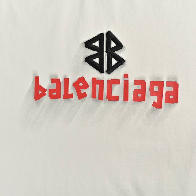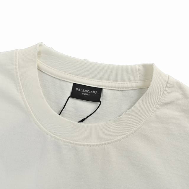 Balenciaga 25Ss double B embroidery and 3D ghosting inkjet logo ripped short sleeves