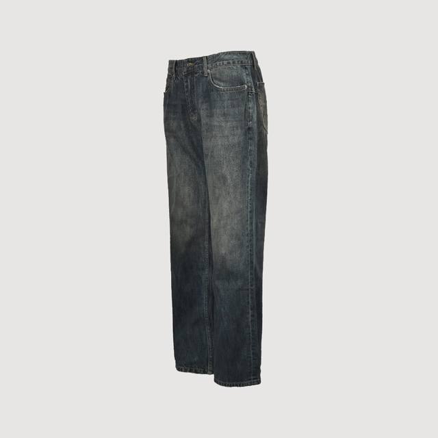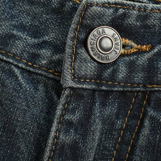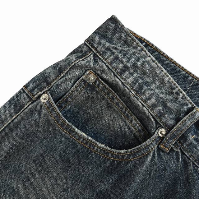 are made of high-density cotton denim, which is specially blended with a trace amount of elastic fiber to enhance wearing comfort. The fabric has been washed in multiple stages, including enzyme washing, stone grinding and hand-brushing, to create a natural fading effect and a vintage texture. The yarn adopts ring spinning technology to enhance the toughness and texture layering of the fabric, ensuring the balance between crispness and softness. Based on the classic straight-leg trousers, the leg line is optimized through precise three-dimensional tailoring. The front and back pieces are spliced with a slight taper to ensure the drape while avoiding bulkiness. The waistband design may incorporate hidden adjustment loops to balance fit and minimalist aesthetics. The buttons are made of special alloy material, the surface is treated with a distressed coating, and the brand's iconic Log is engraved. The rivets and zippers are made of the same series of metals, which have passed the salt spray test to ensure oxidation resistance, while maintaining a rough industrial style, which echoes the overall retro tone. Through the fusion of deconstructionism and street style, the craftsmanship details are transformed into visual language, such as deliberately retained unfinished edges and asymmetrical stains, to strengthen the brand's rebellious spirit while maintaining the practicality of high-end items.