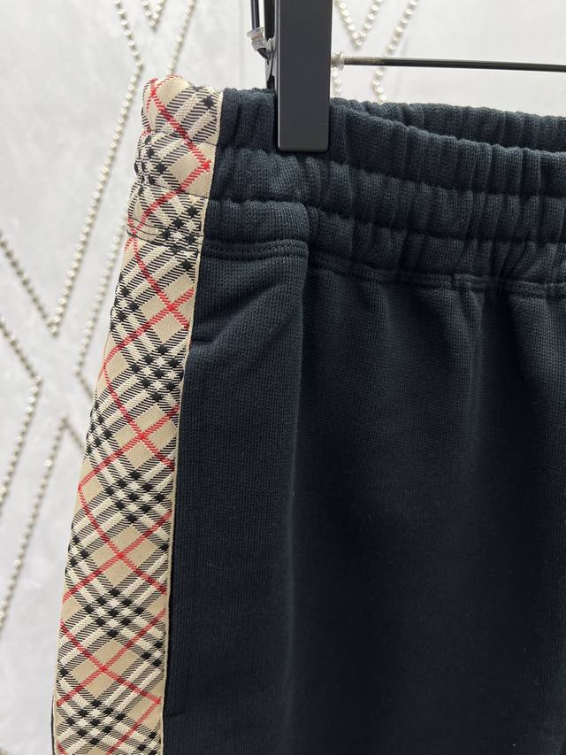 Burberry 25Ss new drawstring shorts, made from cotton blend jersey with signature sand Burberry check bands. Regular fit with warhorse embroidery on pockets.