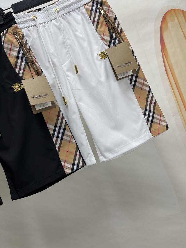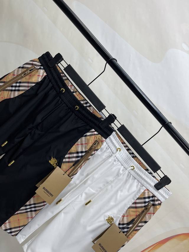 Burberry 25Ss quick-drying beach shorts, the same style as the Burberry counter. Crafted with waterproof quick-drying fabrics, embroidered design logo, classic color-blocking pattern logo on both sides, quick-drying ultra-thin shorts, the overall pants are made of high-quality comfortable fabrics, close-fitting, comfortable and cool, loose version, excellent touch, and its details are also very sophisticated, such as the classic double-side pockets. Shorts are not only a must-have item in summer, but also a representative of fashion. If you also want a fashionable, simple and comfortable pair of shorts, then this light luxury men's shorts is definitely a choice you can't miss! A must-have item for high-end people, with three complete original auxiliary materials and standards! Same style for men and women! Color: black and white Size: M-4Xl Recommended height