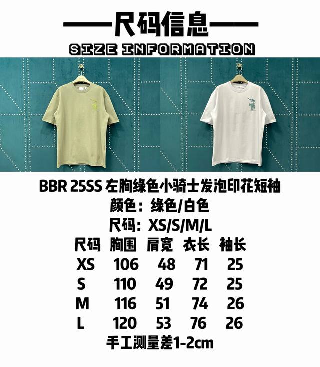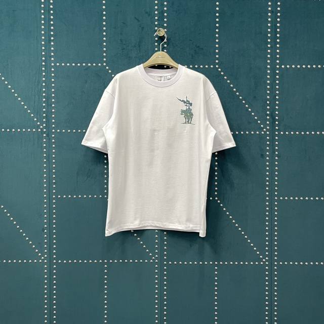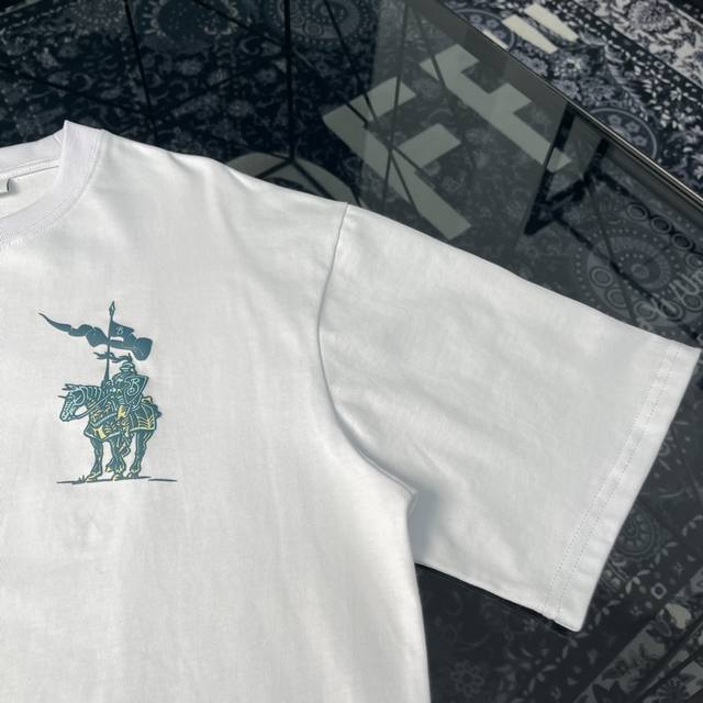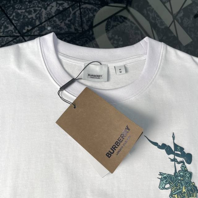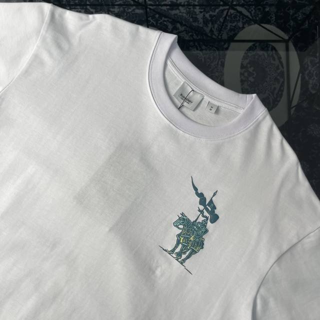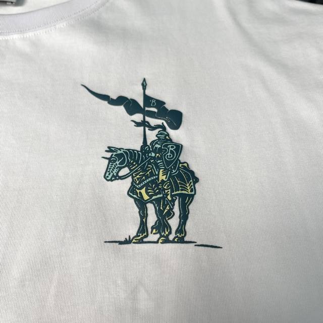 Burberry Bbr 25Ss left chest green knight foam print short-sleeved T-shirt Br020 light luxury men and women's daily commuting essential items correct version free comparison detailed features 260g% cotton double yarn jersey fabric dust-free singeing process on the surface, hair absorption on the bottom, environmentally friendly active dyeing, single-dyeing special thickening 32 double-strand 1