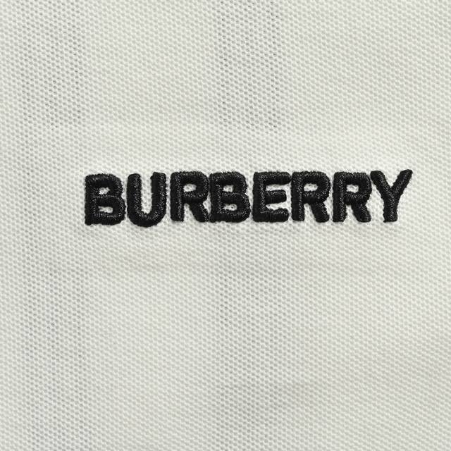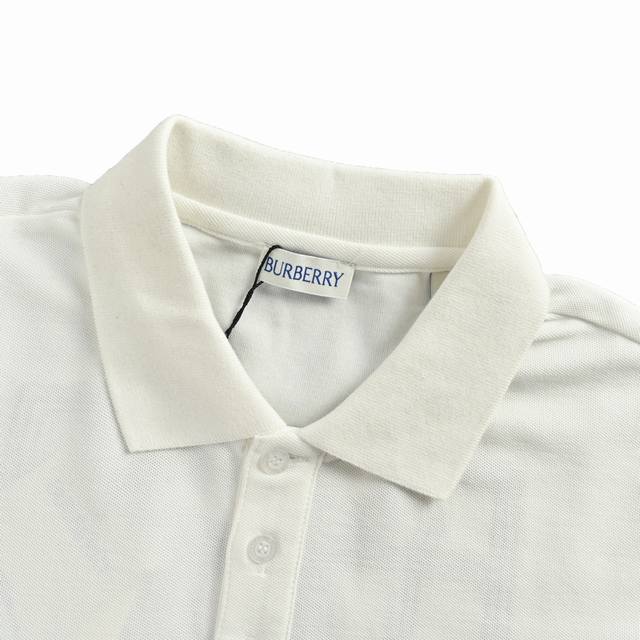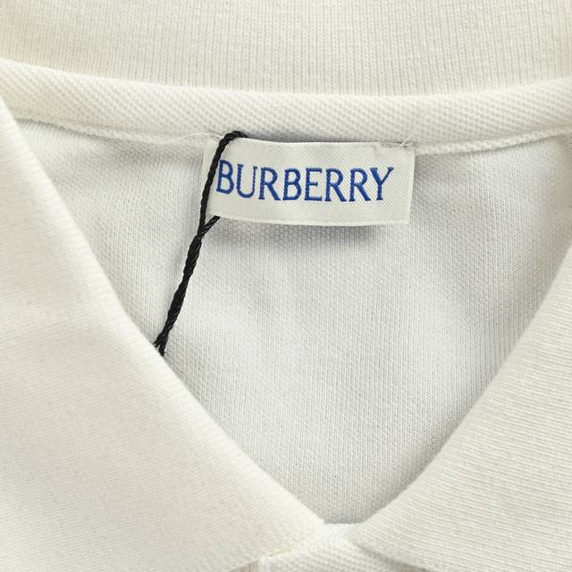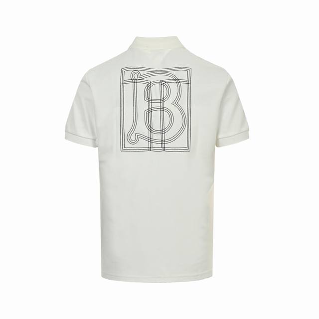 Burberry Polo short-sleeve with large Tb letter embroidery on the back. Made of custom-made 240g pique fabric. Soft and comfortable to the touch. Classic embroidered logo on the front. 3D embroidery on the back. Imported Tajima machine with 13W 10,000 stitches. Platinum hot-stamping on the lining for a comfortable, understated luxury. Buttons are custom-dyed to match the fabric color. Laser engraving to restore the original. Colors: black, white, blue. Sizes: S-XL