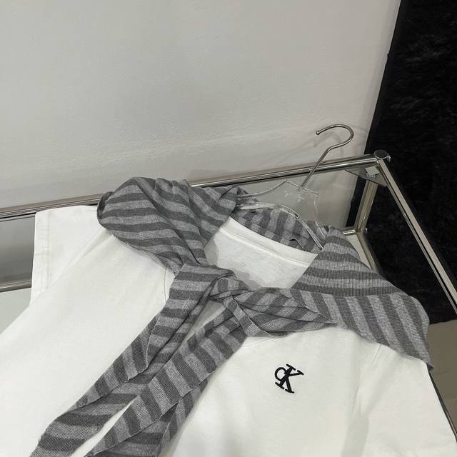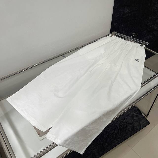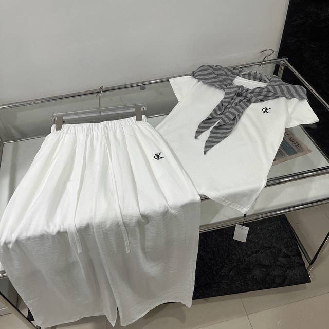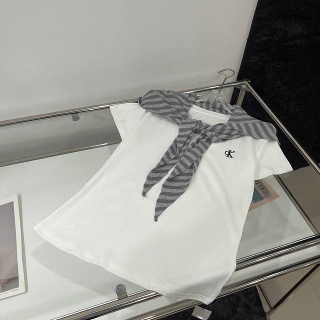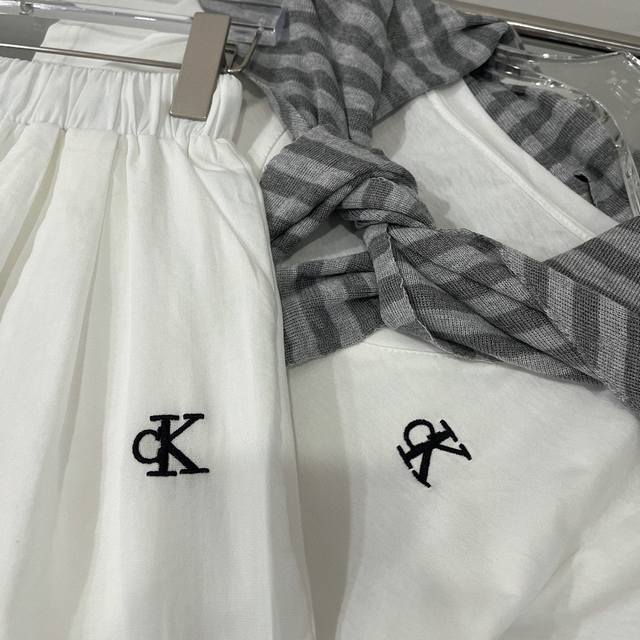 Calvin Klein Ck letter embroidered V-neck short-sleeved T-shirt elastic waist tr