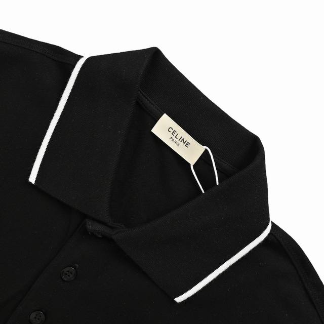 Celine classic embroidered small logo Polo short sleeves The fabric is made of G
