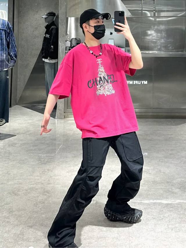 Chanel 25S new trendy T-shirt. Unisex! Limited edition. Fusion of classics and rich colors. Combining classic style with a trendy aesthetic. Presenting a unique and fresh take on the brand. Custom G high-density 40s double-stranded smooth cotton fabric. Comfortable and soft! Skin-friendly. Colors: White, Black, Rose Red, Klein Blue. Sizes: S-3Xl with a slightly expanded fit! Recommended L for those 175cm to 145kg