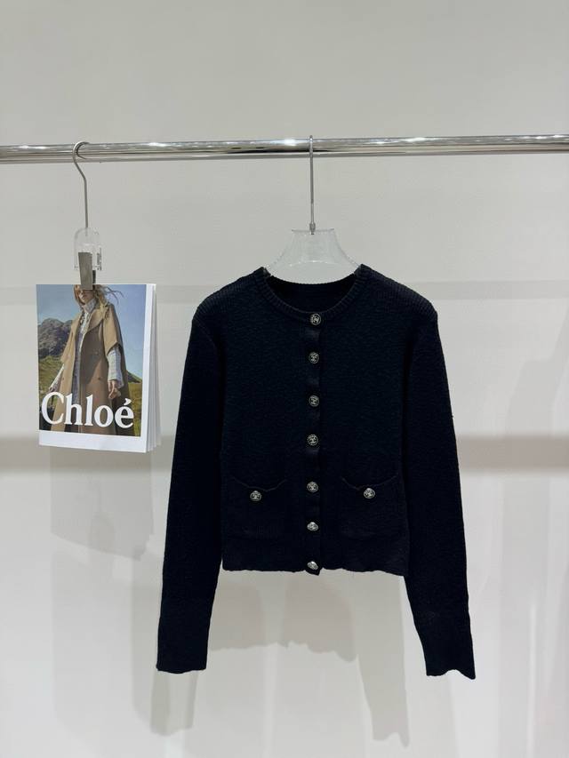 Chanel Chanel Xiaoxiang custom double C button round neck long sleeve button kni