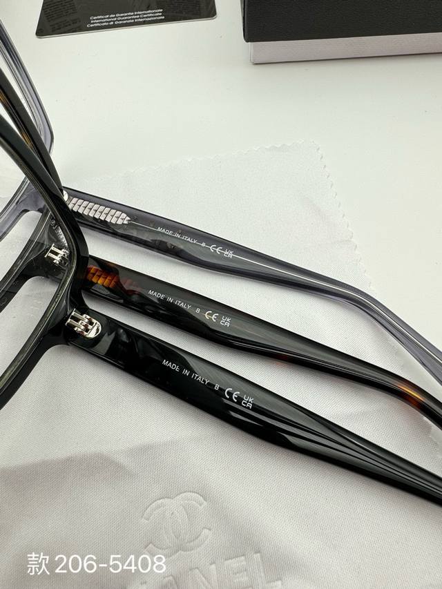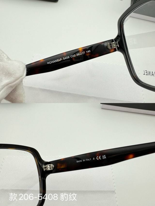 Chanel glasses frame, no-makeup frame with full package, item number: 206-5408. These glasses made popular by G-Dragon are perfect for a no-makeup look, and they're truly a best-seller! They're so popular this year, you have to get them! They can be salty or sweet, and they have a gentle, ladylike style. The black frames are very flattering to the face shape, and they really make the face look more prominent. The small frames are tilted upwards, and the embossed logo on the top is a unique design. They're also a highly recommended no-makeup accessory for fall and winter. No-makeup glasses really look good! I'm really obsessed with them! The square-round frame shape is perfect for square and round faces. The black frame is large enough to wear without pressing on the bridge of the nose, making the face look smaller. It's the best choice for round-faced girls. The small label on the temple is a must-have for everyone! This small and delicate label is a must-have for everyone! The same no-makeup glasses as celebrities. Myopia glasses with glasses. Glasses size: 56-17- Color: Black, gray, leopard print