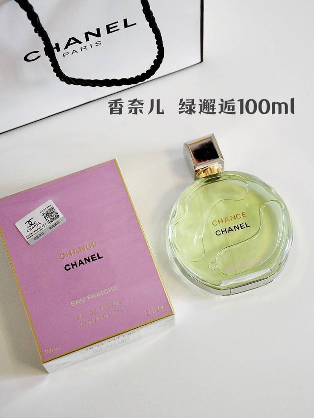 Chanel Green Encounter Eau de Parfum Ml comes with a handbag and a scannable Cha