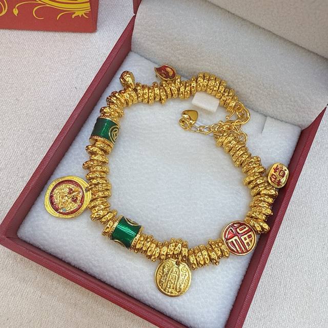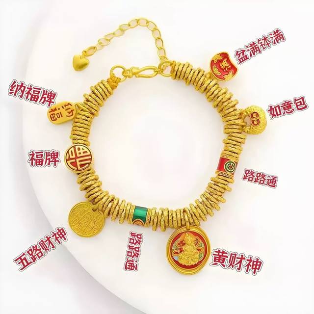 China Gold Wei Xue Same Style Yellow Jambhala Wrapped Bracelet Valentine's Day Gift Full Set This gold bracelet strings together all the blessings. The blessing amulet conveys auspiciousness, the Five Gods of Wealth and Yellow Jambhala protect wealth, and all roads are smooth and your wishes are fulfilled. Wear it and let the beautiful "gold" happiness always accompany you, and "wear" all the blessings and wealth home~ Material: 24K gold-plated brass Note: Pay more attention to maintenance when wearing it. Do not wear it in the bath and avoid contact with acidic substances such as sulfur soap, laundry detergent, etc.... Eight Hearts and Eight Arrows diamonds, fully hand-inlaid, limited edition