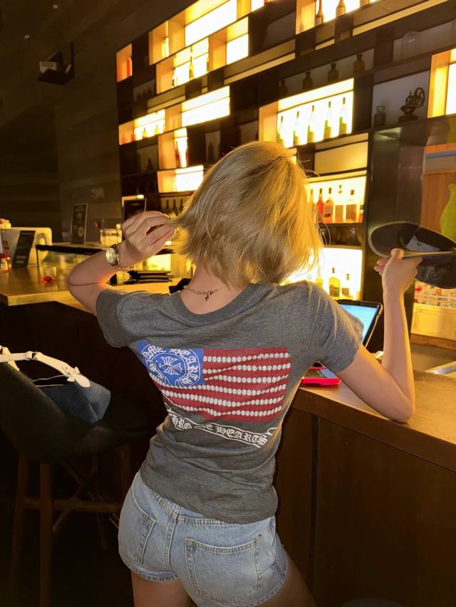 Chrome Hearts new color-contrast flag logo short T-shirt