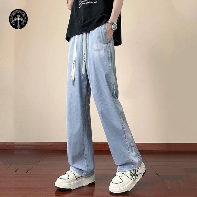 Chrome Hearts summer thin ice silk washed denim pants Made of high-quality denim