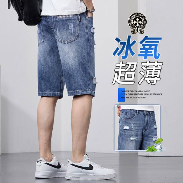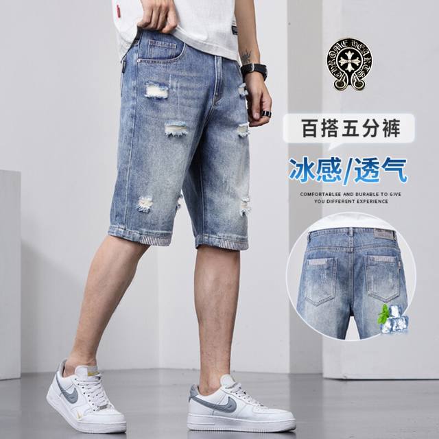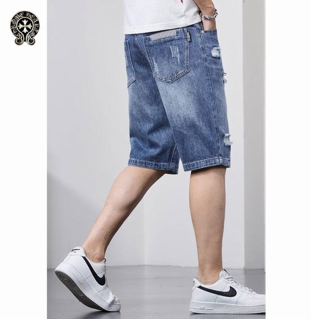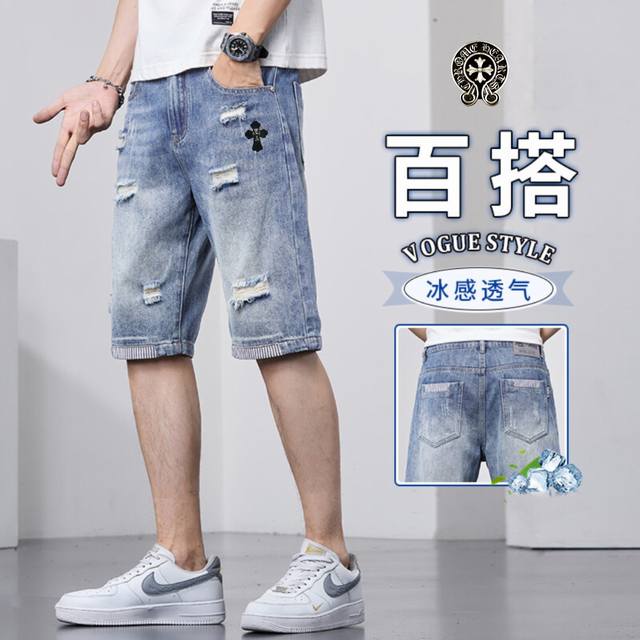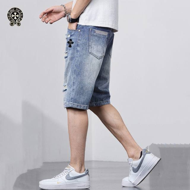 Chrome Hearts summer thin washed cotton ripped casual denim shorts