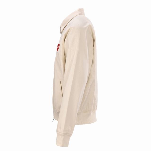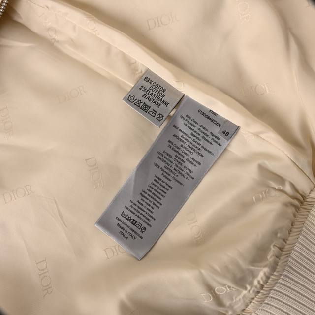 Dior Cd Heart Embroidered Short Jacket. The outer fabric is made of high-density cotton and is custom-dyed. The lining is a silk jacquard. Soft and comfortable to the skin. This meticulously crafted cotton jacket features uncovered pockets and a ribbed finish for a unique look. Its stylish aesthetic easily complements any casual outfit for a sophisticated look. The front features Cd Heart embroidery, a wide-angle collar, and a two-way zipper closure with a Dior-engraved pull. Sizes: 48-52