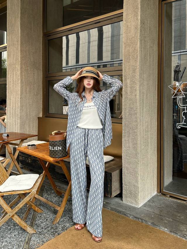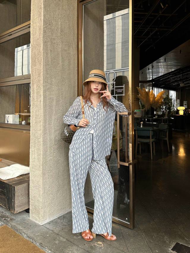 Dior Dior all over print monogram print slightly see-through lapel long sleeve s