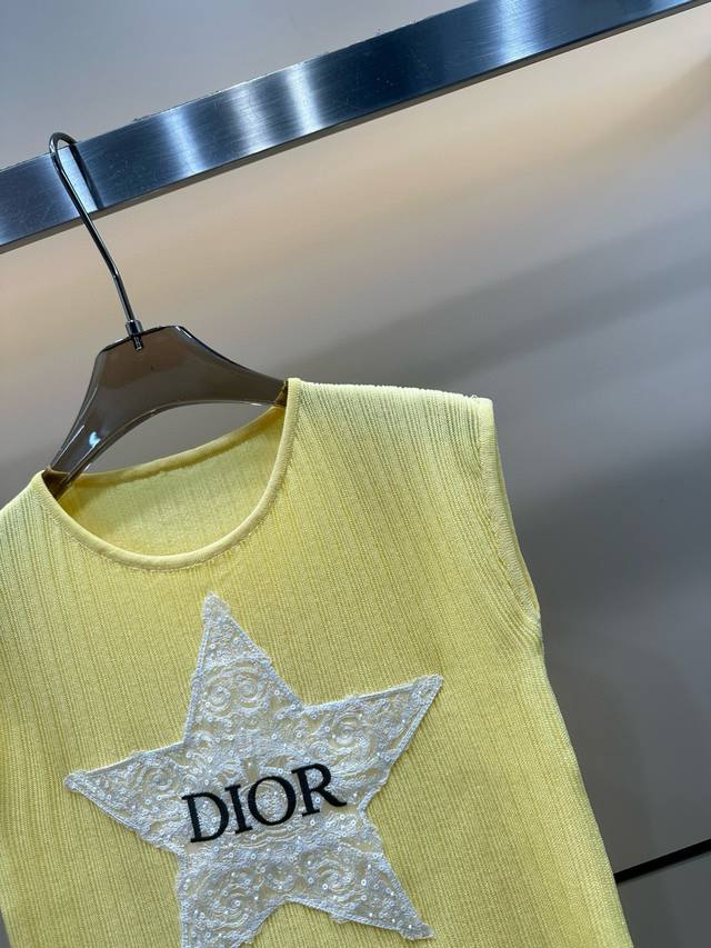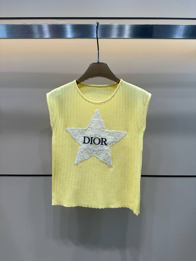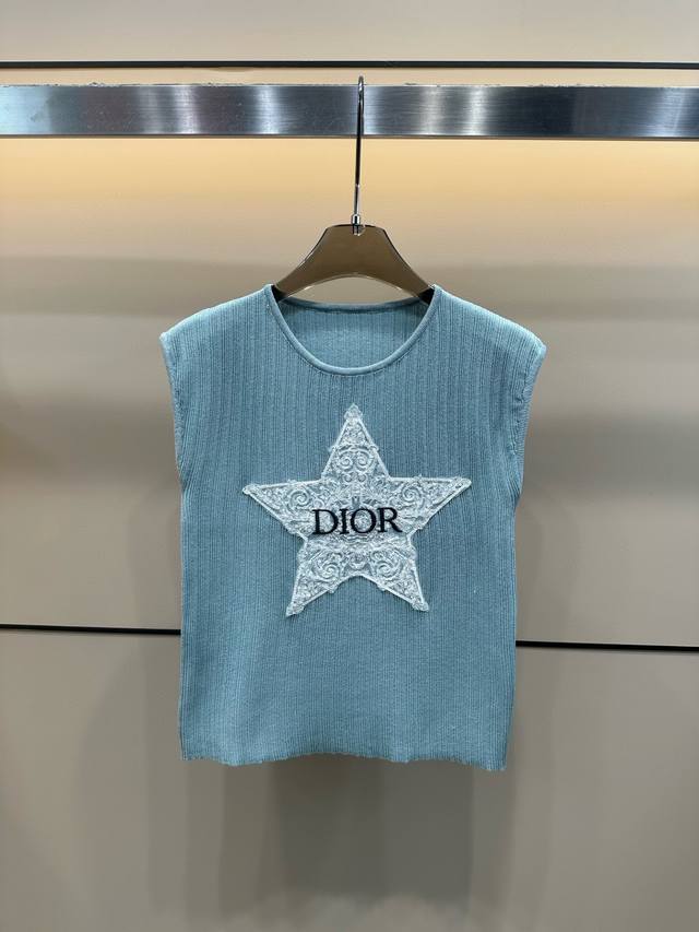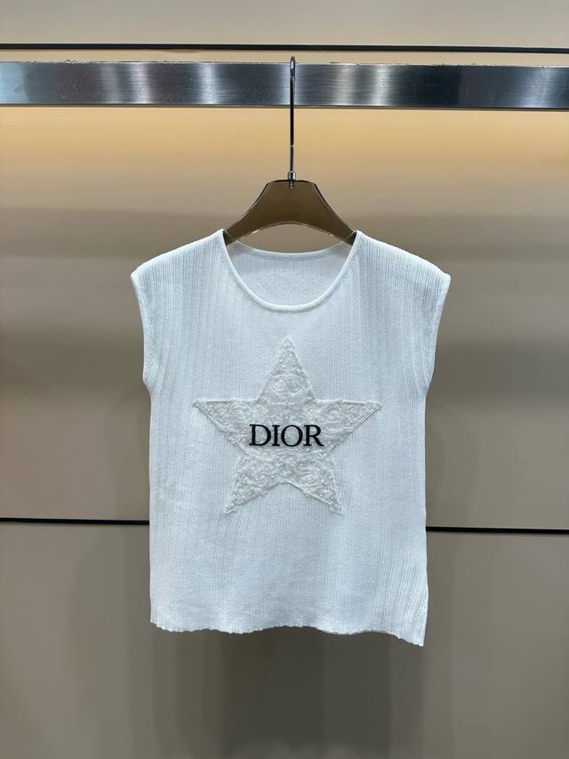 Dior Dior letter embroidered five-pointed star lace patch knitted vest Style num