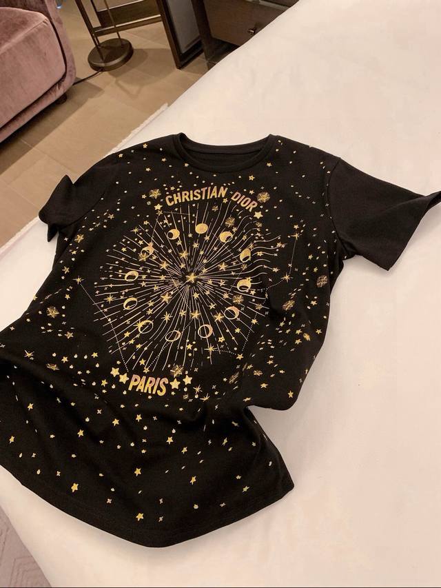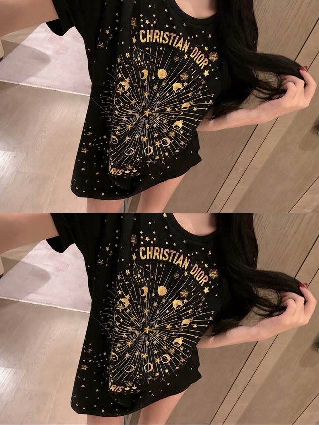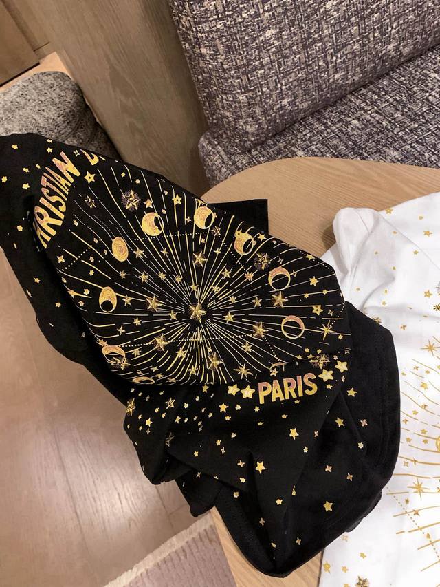 Dior Dior letter moon five-pointed star print embroidery starry round neck short