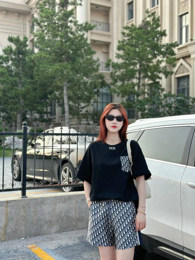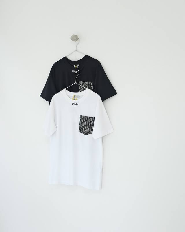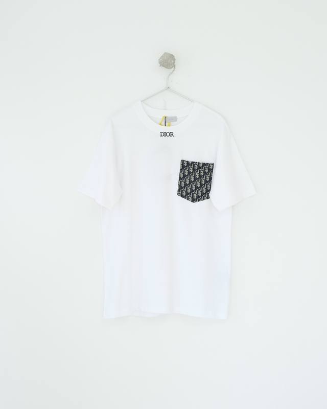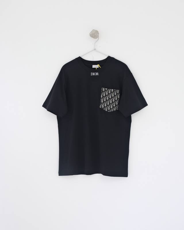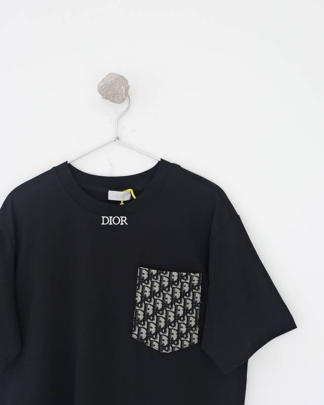 Dior patch pocket pattern embroidered short-sleeved T-shirt Custom-woven and dye