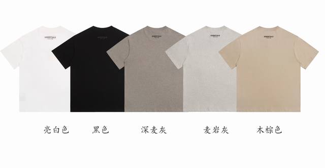 Essentials Fear Of God chest hand-label short-sleeved T-shirt Model number: E2398 Color: Black, White, Wheat Rock Gray, Dark Wheat Gray, Wood Brown Size: S, M, L, XL