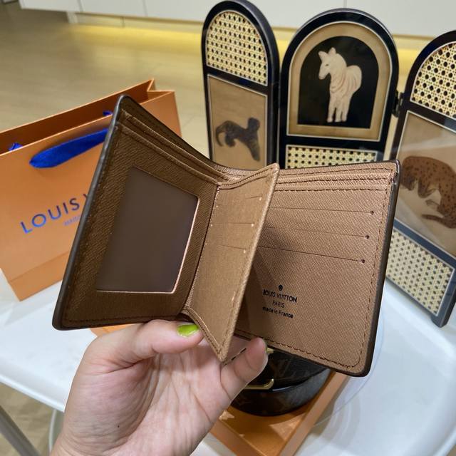 Look at this wallet again, it is also a monogram style, and it is very classy to hold in the hand. The design inside is also reasonable, and it is very convenient to put cards and money.