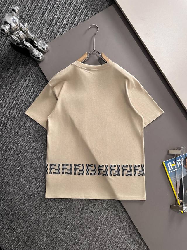 Fendi 2025 new woven zipper pocket stitching back flocked double F letter logo Unisex short-sleeved T-shirt