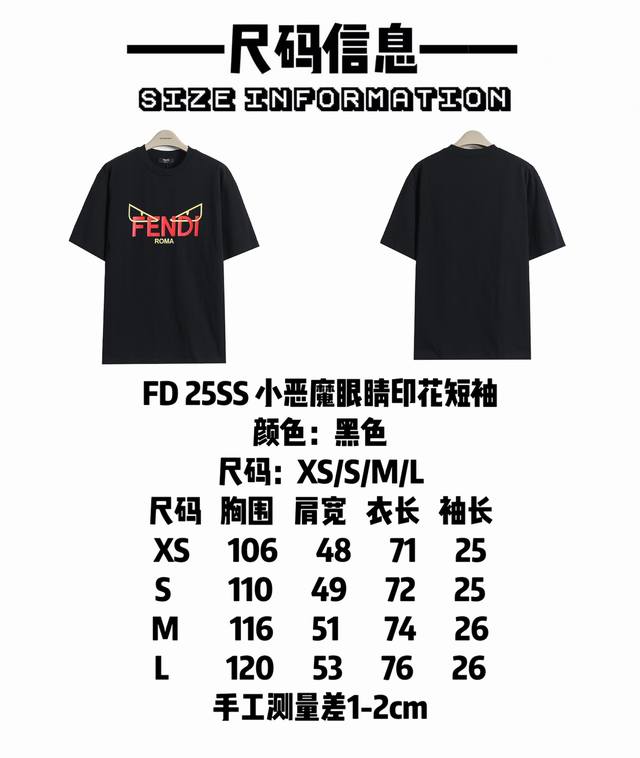 Fendi Fd 25Ss Little Devil Eyes Print Short-Sleeved T-shirt Fd023 Light Luxury Men's and Women's Daily Commuting Essential Item Correct Version Free Compare Detailed Features 260g% Cotton Double Yarn Jersey Fabric Dust-Free Singeing Process on the Face, Hair Absorption on the Bottom, Environmentally Friendly Active Dyeing, Single-Vat Dyeing, Special Thickening 32-Count Double-Ply 1