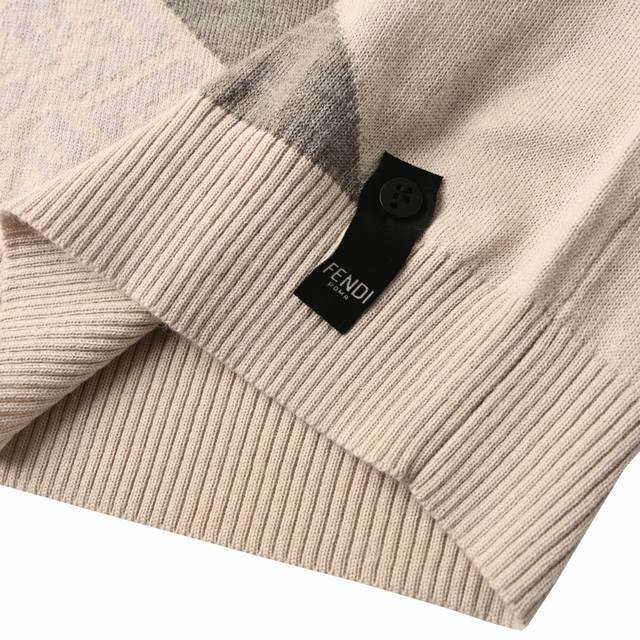 Fendi Fd oblique monogram round-neck sweater is made from a wool and cashmere blend, woven in ice white and black wool. Combining exquisite craftsmanship with modern production techniques, this piece is both artistic and practical. Whether it's the knit density, pattern design, or detailed treatment, it reflects the brand's ingenuity. The buttons are 100% mother-of-pearl. Size: 46-52