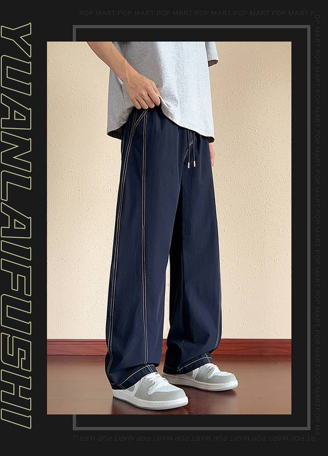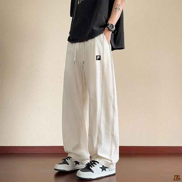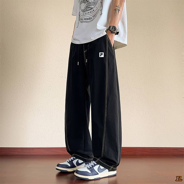 Fila exclusive real shot of the new M-8Xl summer high-quality ice silk scimitar pants large size straight wide leg quick-drying thin drape plus fat air-conditioning pants, this season's main product, sufficient supply, rest assured to promote, high-end quality, classic design, excellent workmanship, classic and versatile, the upper body effect is excellent