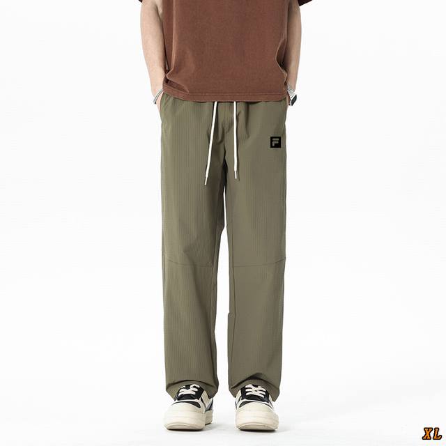 Fila exclusive real shot of the new summer high-quality casual pants casual loose straight sports ice silk thin wide-leg pants, this season's main, sufficient supply, rest assured to promote, high-end quality, classic design, excellent workmanship, classic and versatile, the upper body effect is excellent