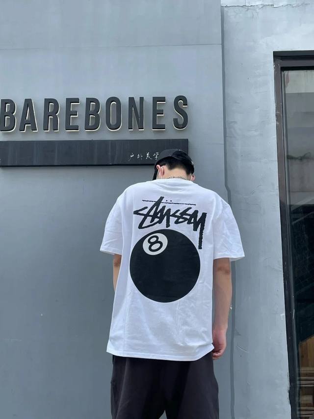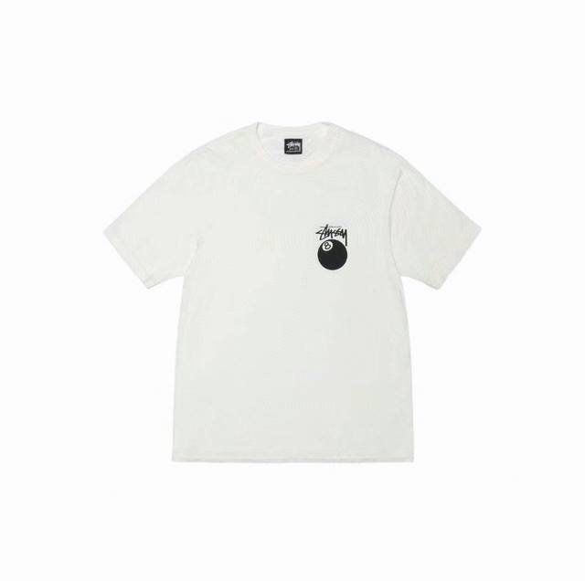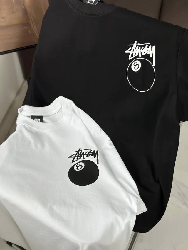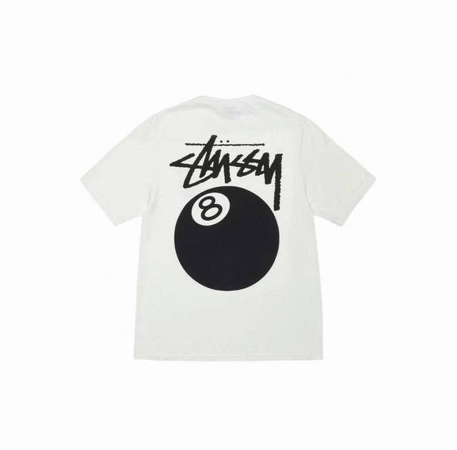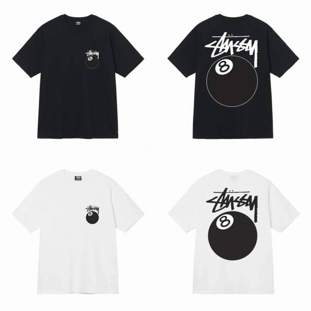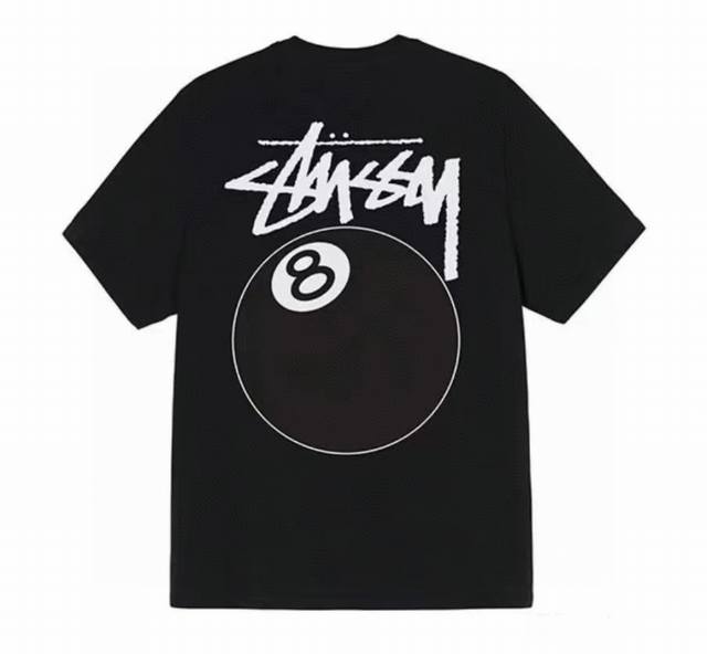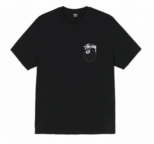Stussy SS25 new black 8 billiards print couple round neck short-sleeved T-shirt