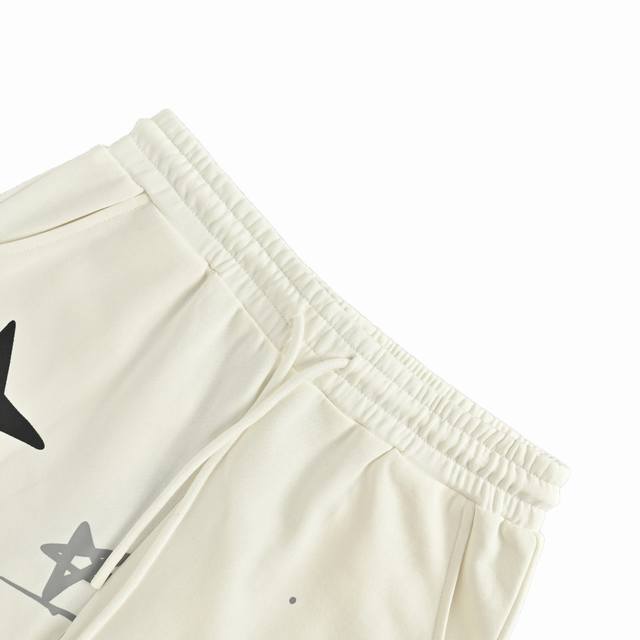 are made of 380G pure cotton terry fabric, which is etched after custom dyeing. It is treated to be silky and super soft compared with the original. The texture of the cloth is clear and obvious, the drape is excellent, and the workmanship is exquisite and meets the export standards. There are two embroidery on the whole pants, the letter pattern is embroidered on the front trouser legs, and the logo is on the back waist. The embroidery process uses the Behringer embroidery machine to make the embroidery color fuller, the embroidery more three-dimensional, highly breathable and comfortable, the details are impeccable, and the feel is delicate and soft! The upper body version is superb!