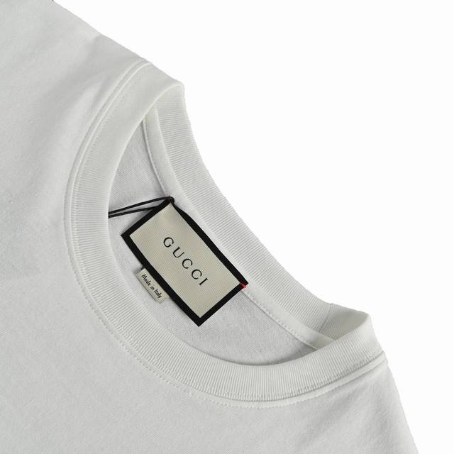 Inspired by the prints of the 80s. This short-sleeved knitted cotton T-shirt cleverly uses the extended ribbon of the Gucci Cosmogonie series to interpret the retro style pattern.