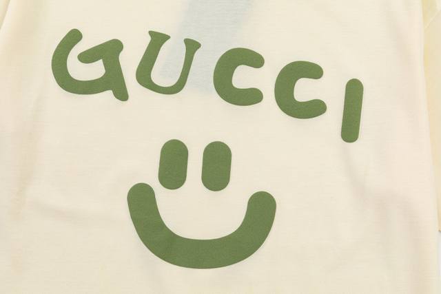 Gucci Double G smiley face Logo printed round neck short-sleeved T-shirt Fabric: