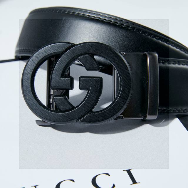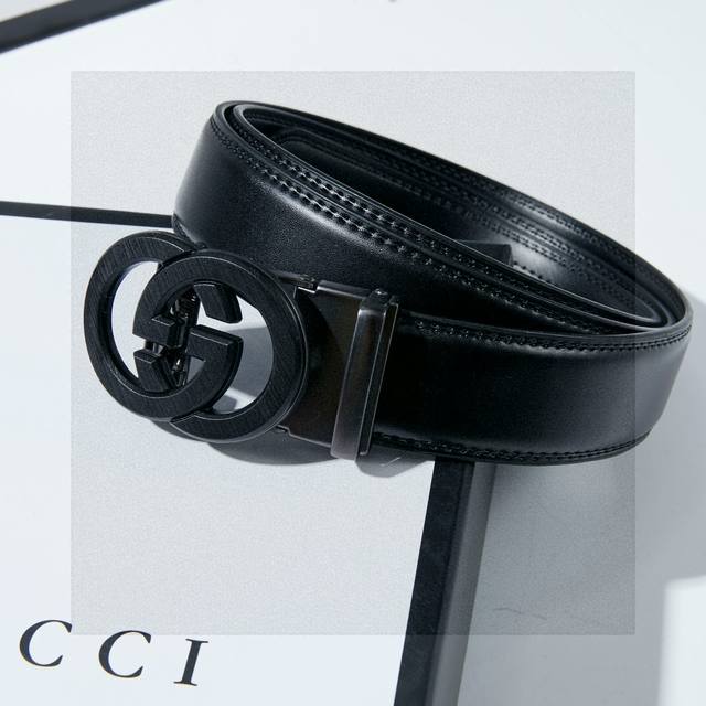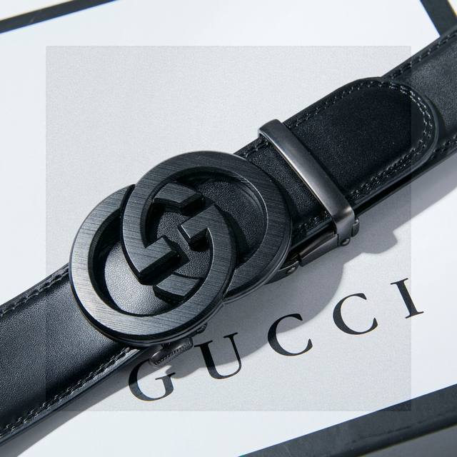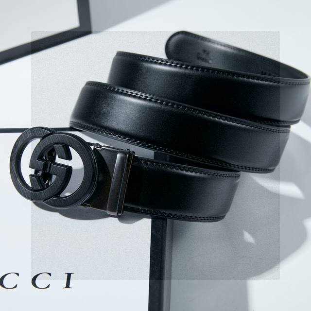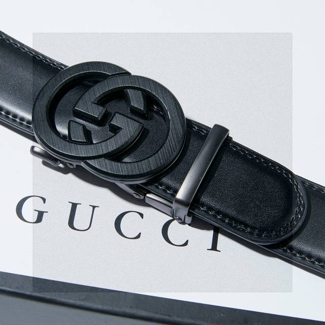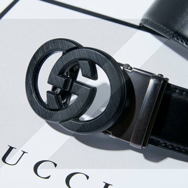 Gucci hollow automatic snap buckle leather belt with matte surface, the most pop