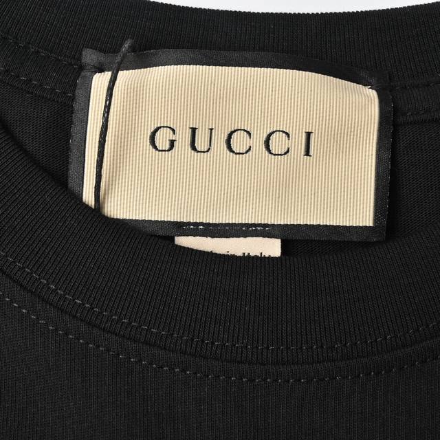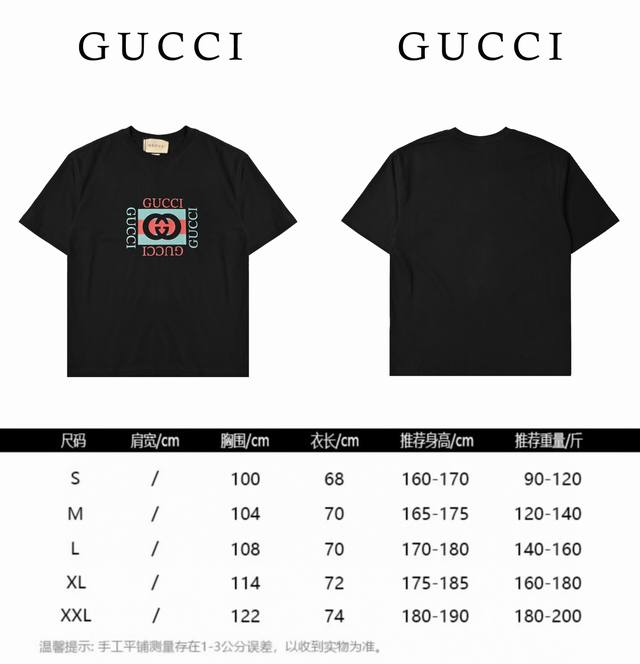 Gucci new classic interlocking round neck short-sleeved T-shirt personalized digital printing custom 260g double yarn 100% cotton fabric unisex style item number 529 003 size: S M L XL XXL black apricot