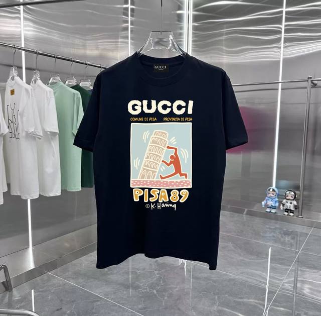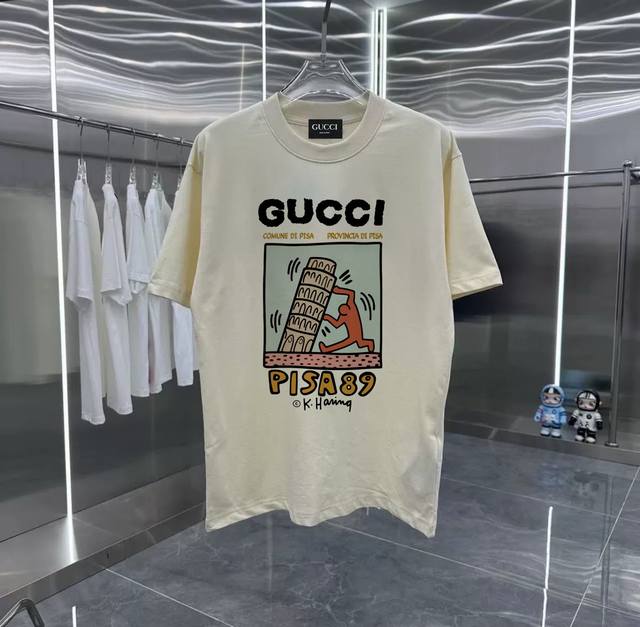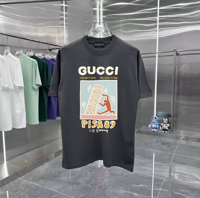 Gucci Pisa Tower series retro couple print short-sleeved T-shirt with dropped sh