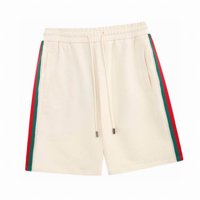 summer new style side red and green stripe casual shorts customized pure cotton fabric super texture soft breathable fashion unisex casual shorts