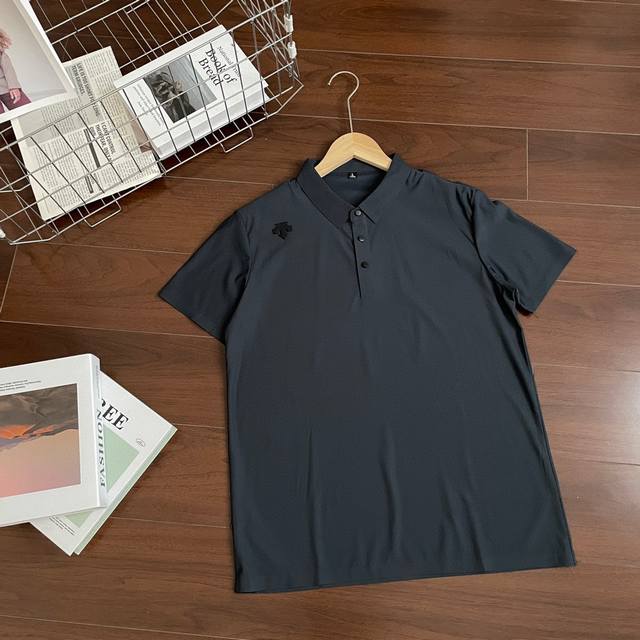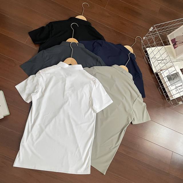 high-end customized ice silk fabric, comfortable to wear, cool, silky and breathable, classic simple small Logo design on the chest, lapel button design, versatile business casual style, a must-have item for trendy men, handsome and versatile on the body, exquisite workmanship, details in place, full of sincerity