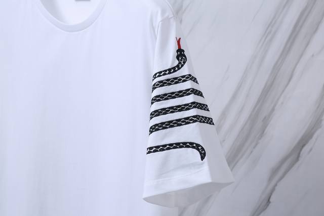 Item No.: T022 Tb Snake Year Limited Edition Embroidered Striped Round Neck Cotton T-shirt
