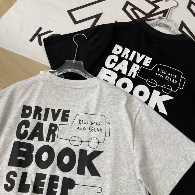 Kolon Sport's two-tone, car-themed collaboration features a large back print, a round neck, and a lettered, fitted, straight-cut short-sleeved T-shirt. Available in Korea. Fabric: Made with 40-knit double yarn, 320g fabric, original 1:1 high-weight, pure cotton ribbed neckline, and a loose fit. The meticulous craftsmanship sets it apart from standard stock! Printing: Digital printing machines imported from Germany ensure exceptional clarity, something that won't crack even after wear. Colors: Linen gray and black. Sizes: M-XXL. Length: Chest, Shoulder, Sleeve. Recommended Weight: catties.