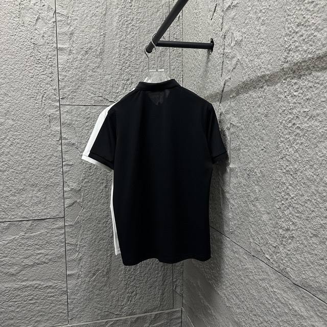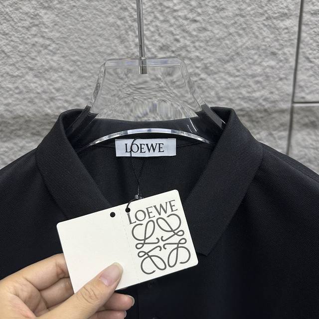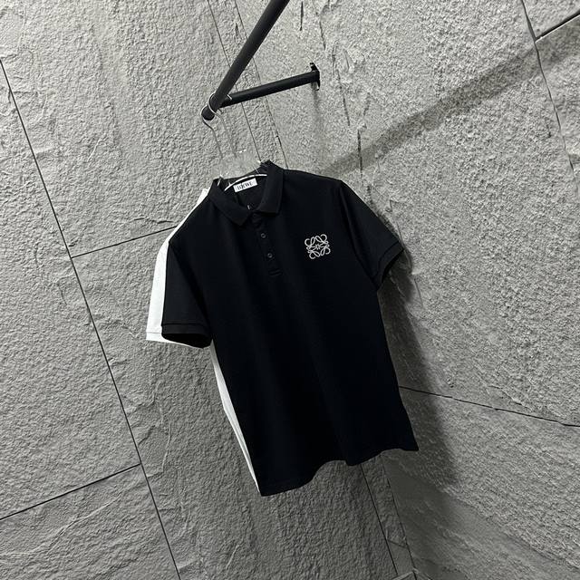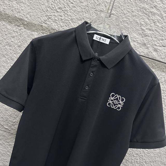 Loew* Loew* Short-sleeved Polo 2025 Spring/Summer New Simple Classic Totem Embroidery Pearl Fabric Short-sleeved Polo Stand Collar Unisex Size: ML Xl 2Xl 3Xl Color: Black White