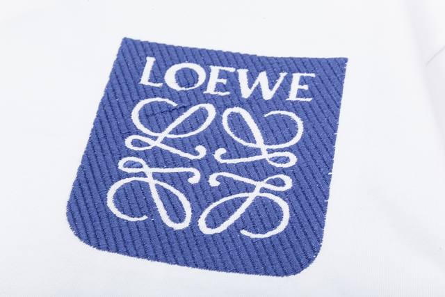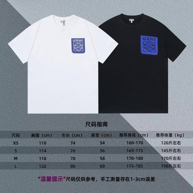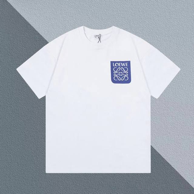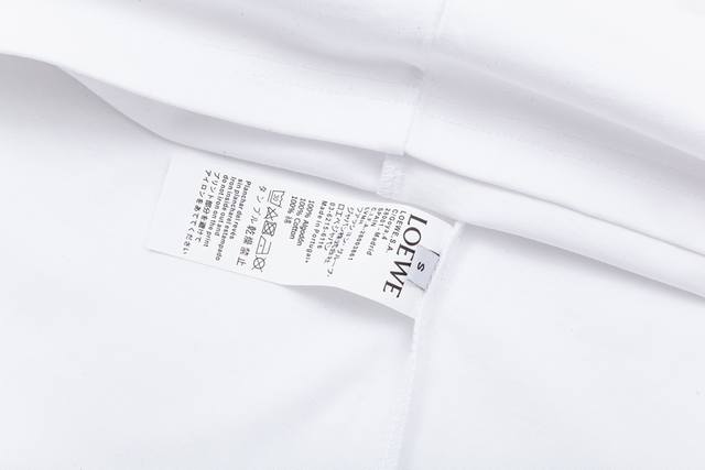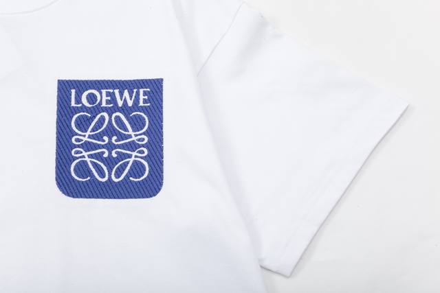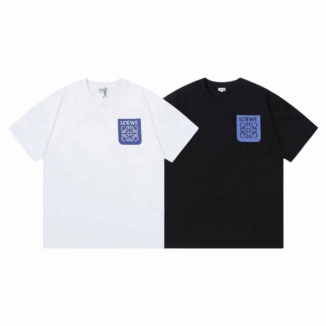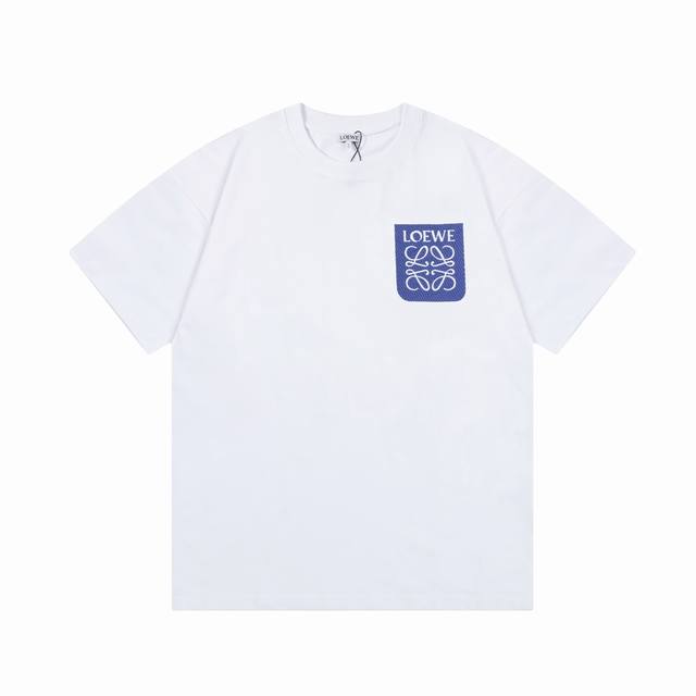 Loewe's new custom 32-count 290g cotton cover fabric has been washed to prevent shrinkage, deformation, fading, and linting. Features faux pockets and embroidered logo. Unisex short-sleeved T-shirt. Colors: Black and White. Sizes: XS-L