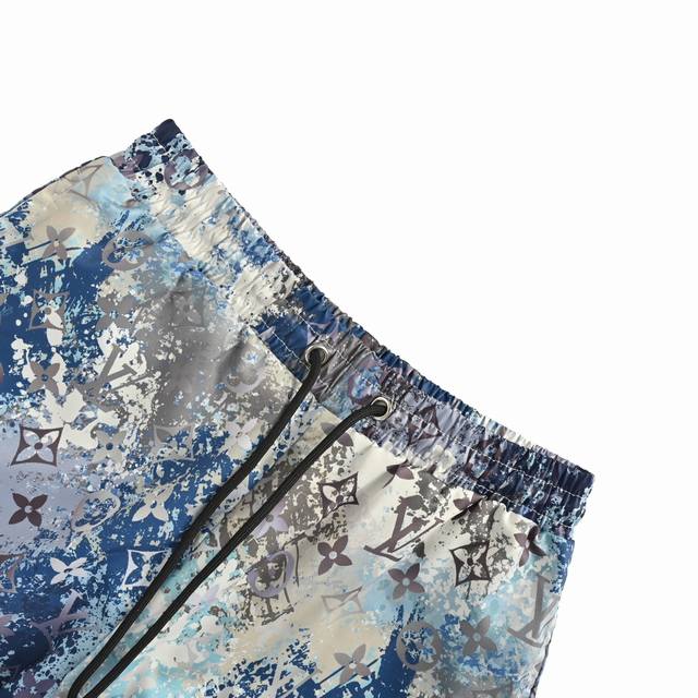 Louis Vuitton 25Ss all-over monogram beach shorts, made of high-density silk jacquard, are a 100% replica. The pants feature 3D tailoring and sewing techniques, a full mesh lining, and custom-made signature LVSE hardware on the back, ensuring 99% authentic detailing. Includes a full set of hangtags, main label, trims, and a 1:1 original mold. Loose fit, unisex. Sizes: M-3XL