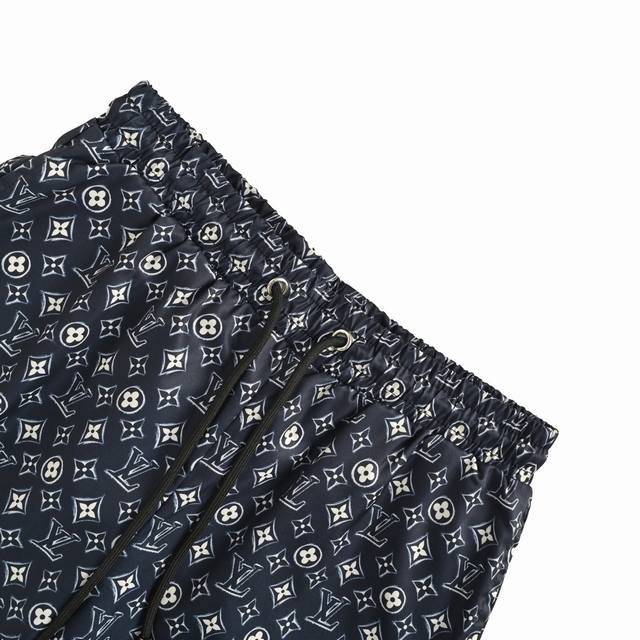 Louis Vuitton 25Ss monogram-printed beach shorts, made of high-density silk jacquard, are a 100% replica. The pants feature 3D tailoring and sewing techniques, a full mesh lining, and custom-made signature LVSE hardware on the back, ensuring 99% authentic detailing. Includes a full set of hangtags, main label, trims, and a 1:1 original mold. Loose fit, unisex. Sizes: M-3XL