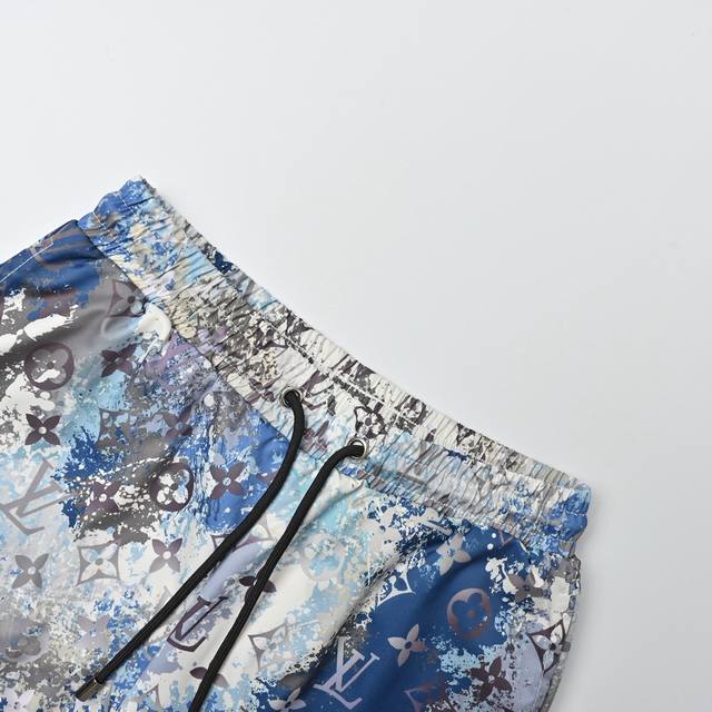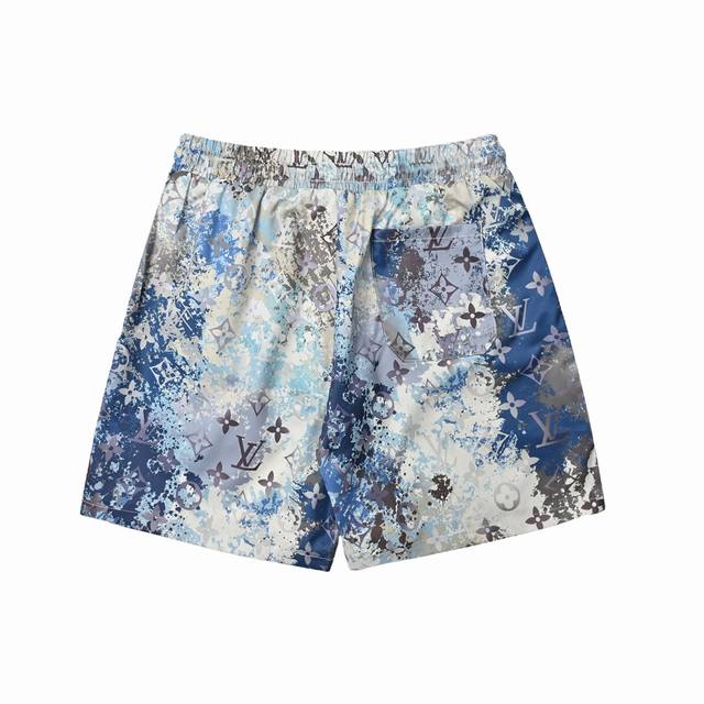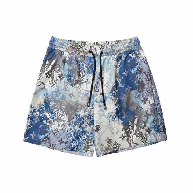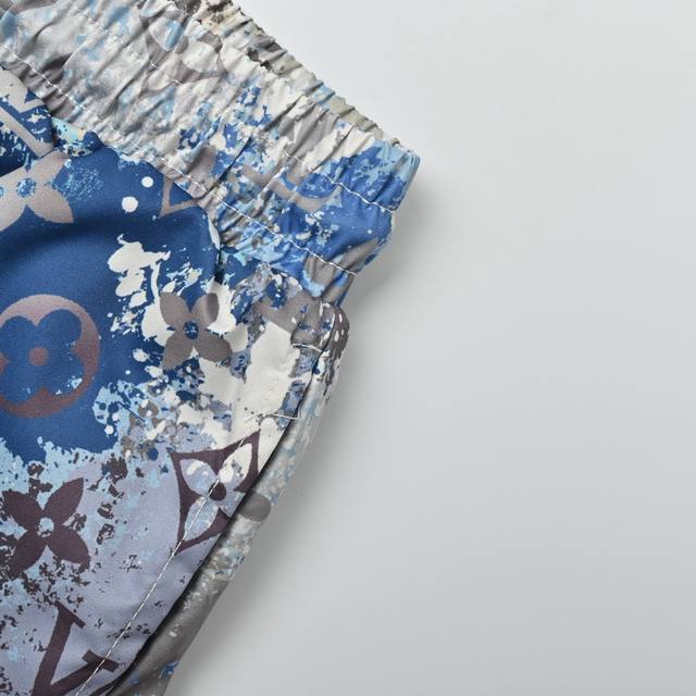Louis Vuitton beach shorts with all-over side stripe print. Made of high-density