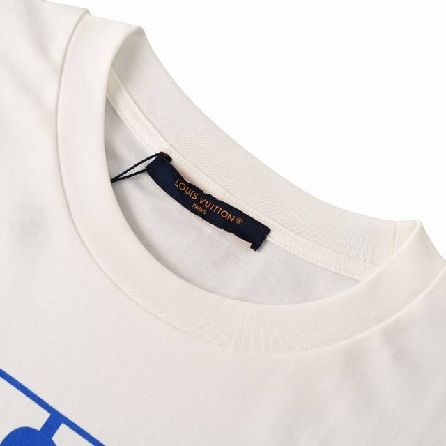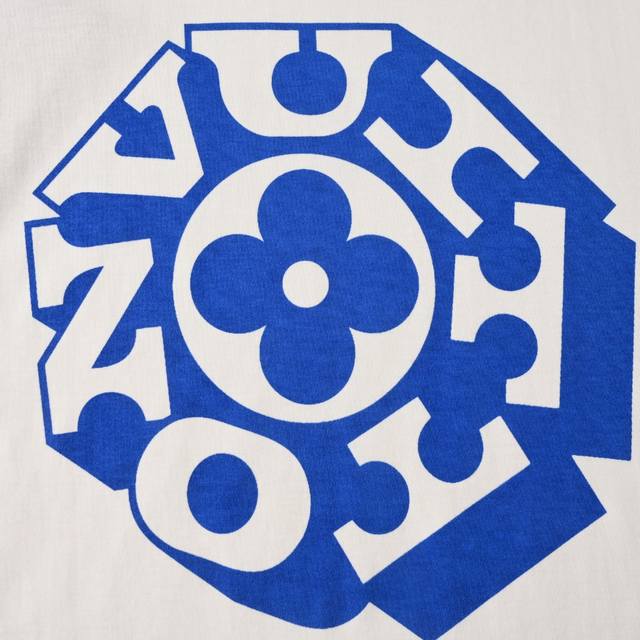 Louis Vuitton Lv blue circle print short-sleeved T-shirt genuine 9 purchase, customized 60s mercerized soft cotton, matching 1*1 ribbing, fabric fermentation washing, rubber paddle printing, customized accessories, loose version Size: S-Xl