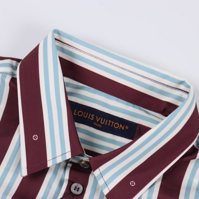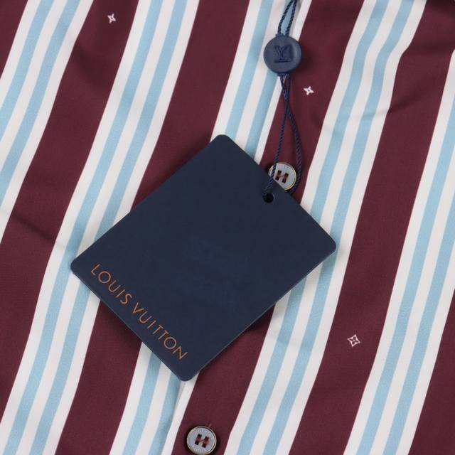 Louis Vuitton Lv brown and white striped short-sleeved shirt Authentic 10300 pur