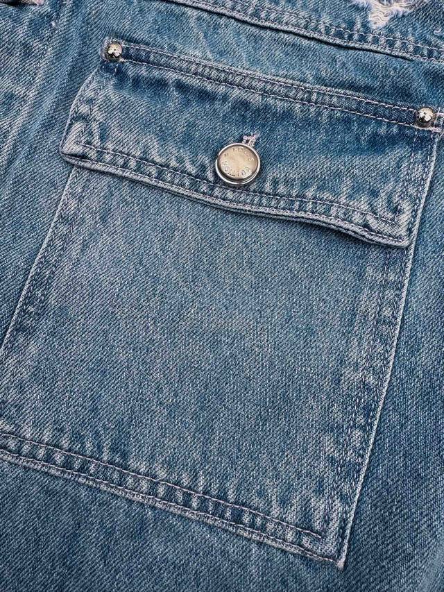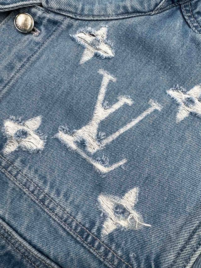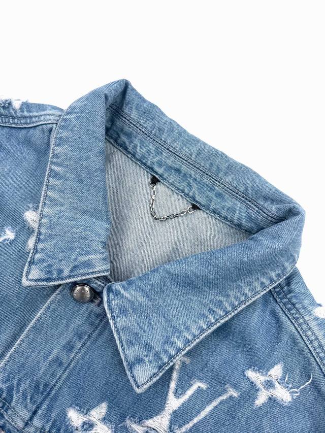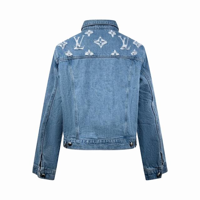 Louis Vuitton washed ripped denim jacket, customized pure cotton exclusive denim material, thick, three-dimensional, comfortable, close to the skin, contrasting color Torn Monogram details present a torn effect as embellishment, as dazzling as a work of art, the back shoulder injects a trendy atmosphere, and the button flap pockets on the chest are sublimated. The eye-catching Lv buttons are the shining pearl of the fashion world, making every outfit a fashion feast. Process 1: Laser burning process, an advanced process that uses laser technology to engrave patterns, projects the laser onto the surface of the material, causing the material to be locally heated to melt and form the natural torn pattern of Lv and logo, which can precisely control the position and shape. Process 2: Template machine bag opening, the preset template is used to guide the position, shape and size of the bag opening, and the accuracy ensures the quality of the bag opening effect. Process 3: Washing and light frying double process, first desizing and cleaning the denim material and pre-treating it, then sand washing to produce a fading effect, and then frying the color through special chemical treatment to make the denim jacket have a special contrasting effect. Accessories: Customized 1:1 Lv double D buckle copper chain, customized 1:1 Lv I-shaped buckle customization 1:1 Lv hit the nail customization 1:1 Lv trademark version: loose version size: 48 50 52 54 model number: Mm008-C45