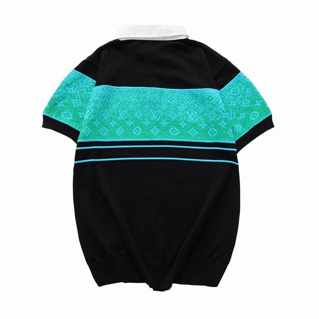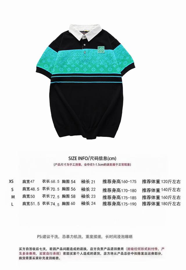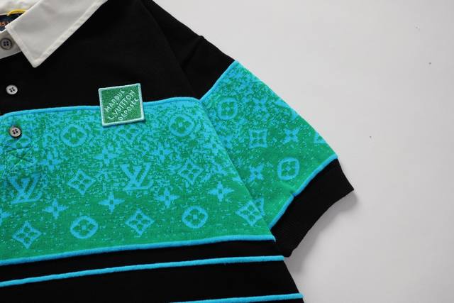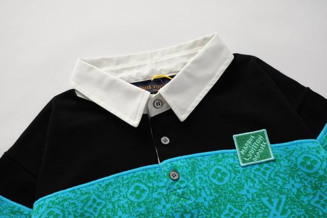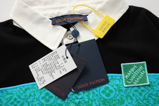 Original purchase 20,650; fine needle cotton knitting, standard version, Marque L.Uuitton Deposee embroidery on the left chest, top button embellished with Lu logo, poplin shirt collar, trimmed shoulder sleeves