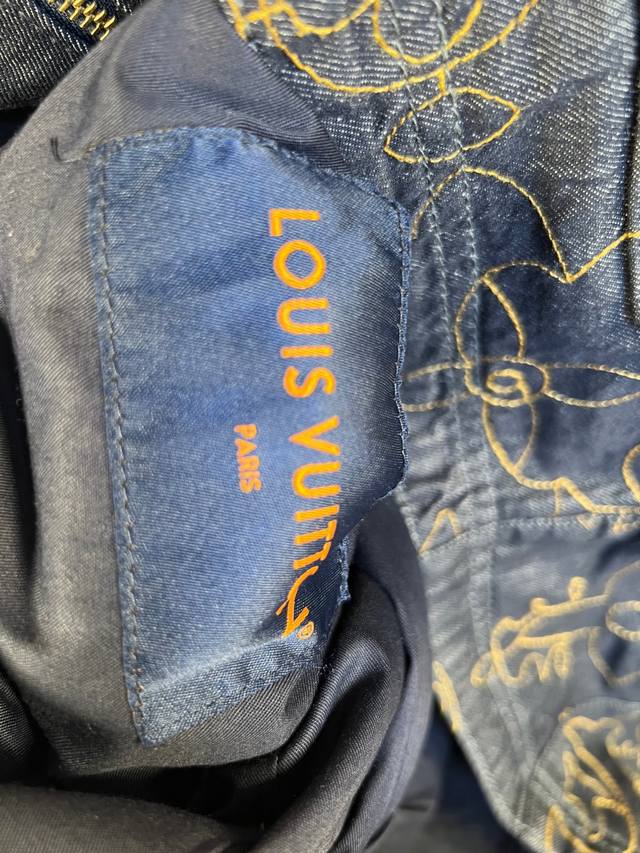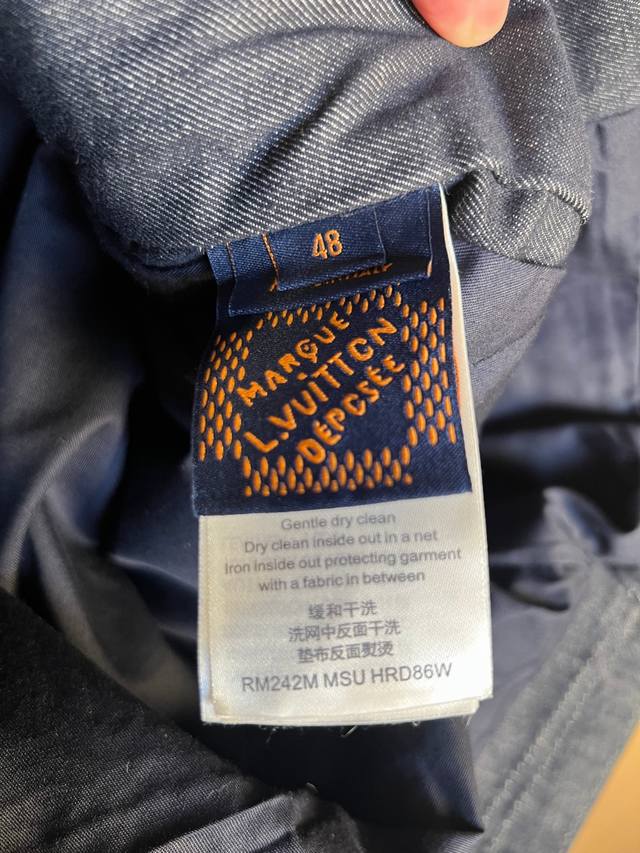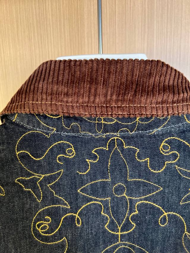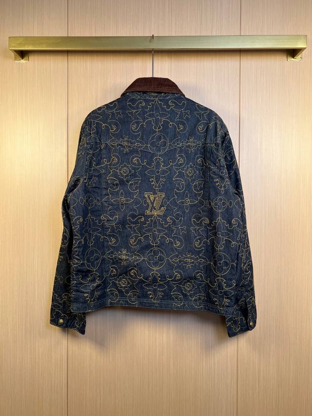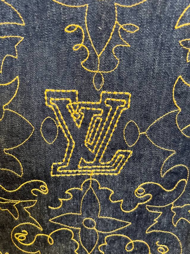 The Lv Arabesque pattern on the autumn and winter show injects romantic western style into the Monogram element. The pockets and hem are embroidered with contrasting yarn, the Lv logo is located on the chest and back, and the Lv Saddle embossed patch is a highlight on one of the pockets. It can be paired with the same style of trousers to create an elegant look.